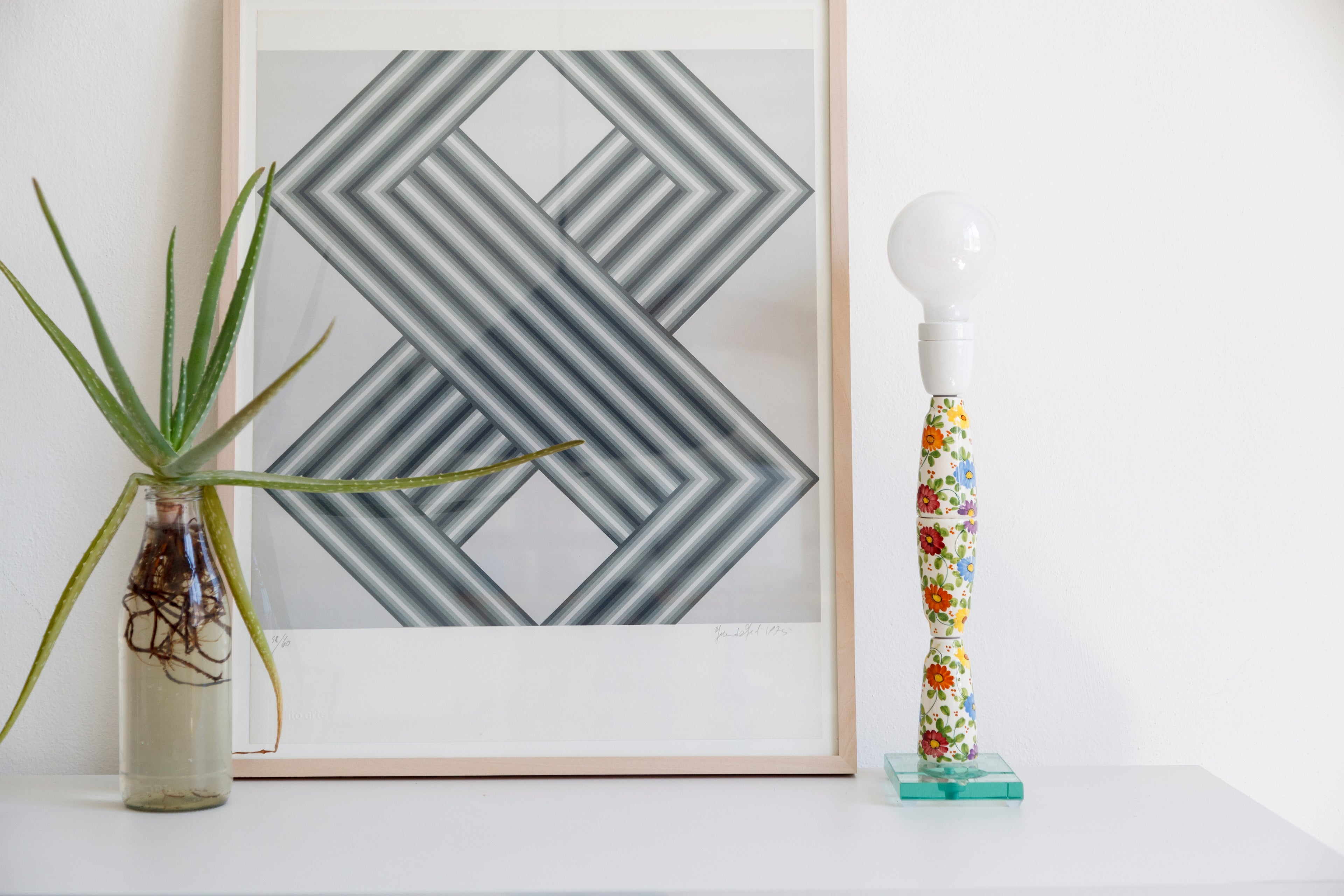Our first LOMI_lighting presentation features the fruit of our research in this sphere, including a series of lamps constructed using 1950/60s hand-painted ceramic lighting components from Capodimonte in southern Italy. Destined for landfill, we were able to save a large collection of these pieces, many still packed in their original shipment boxes. The style of the ceramic elements is colourful and vibrant, with a liberal touch of kitsch. Our objective has been to give new life to these components, adapting their use to make lamps that can be used in contemporary ambiances, bringing a touch of joie de vivre, while also retaining a sense of modernity
